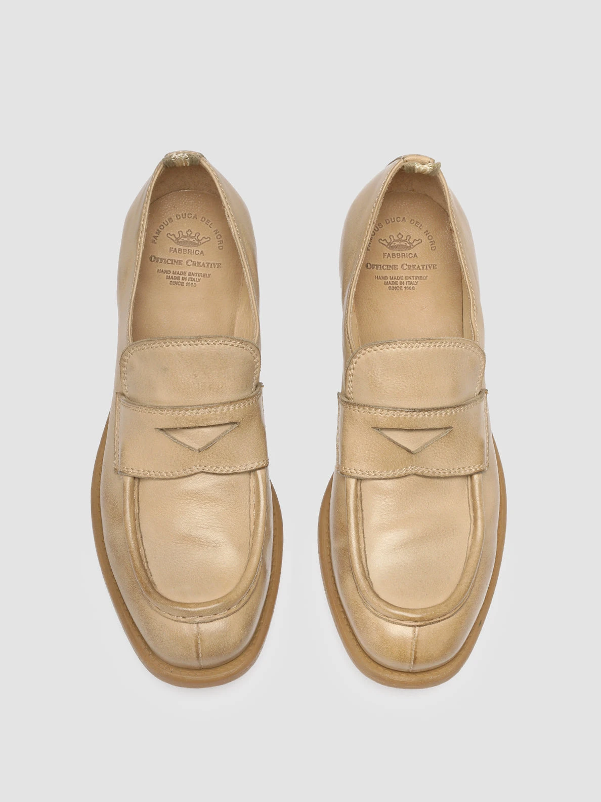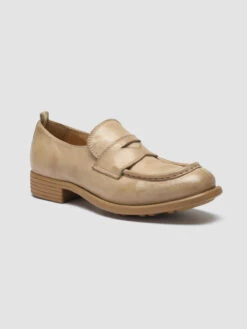 Our Calixte penny loafers in premium taupe leather reveal a remarkable character silhouette. Set on a rubber sole with a non-slip bottom and a stacked heel, they reveal a rounded toe highlighted by the reinforcement seam, front strap and signature grosgrain heel loop tab.