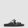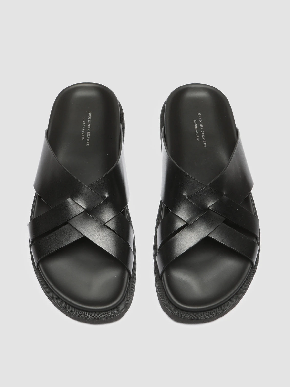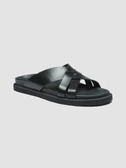 Easy to combine and wear, our Charrat slides are handcrafted from fine black smooth leather. They reveal an elegantly crossed strap band, round toe, molded insole and a flat natural rubber sole with a non-slip bottom.