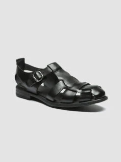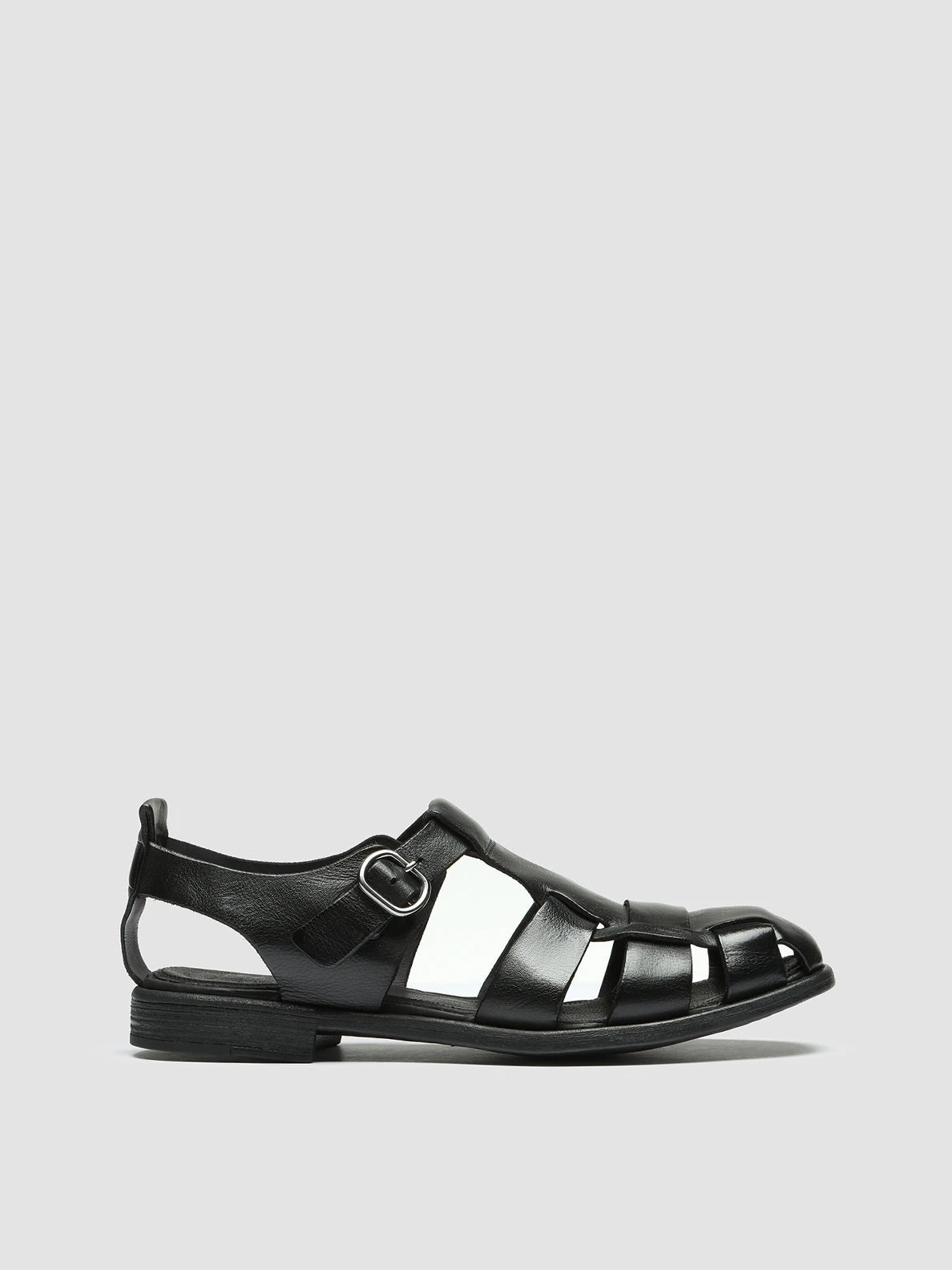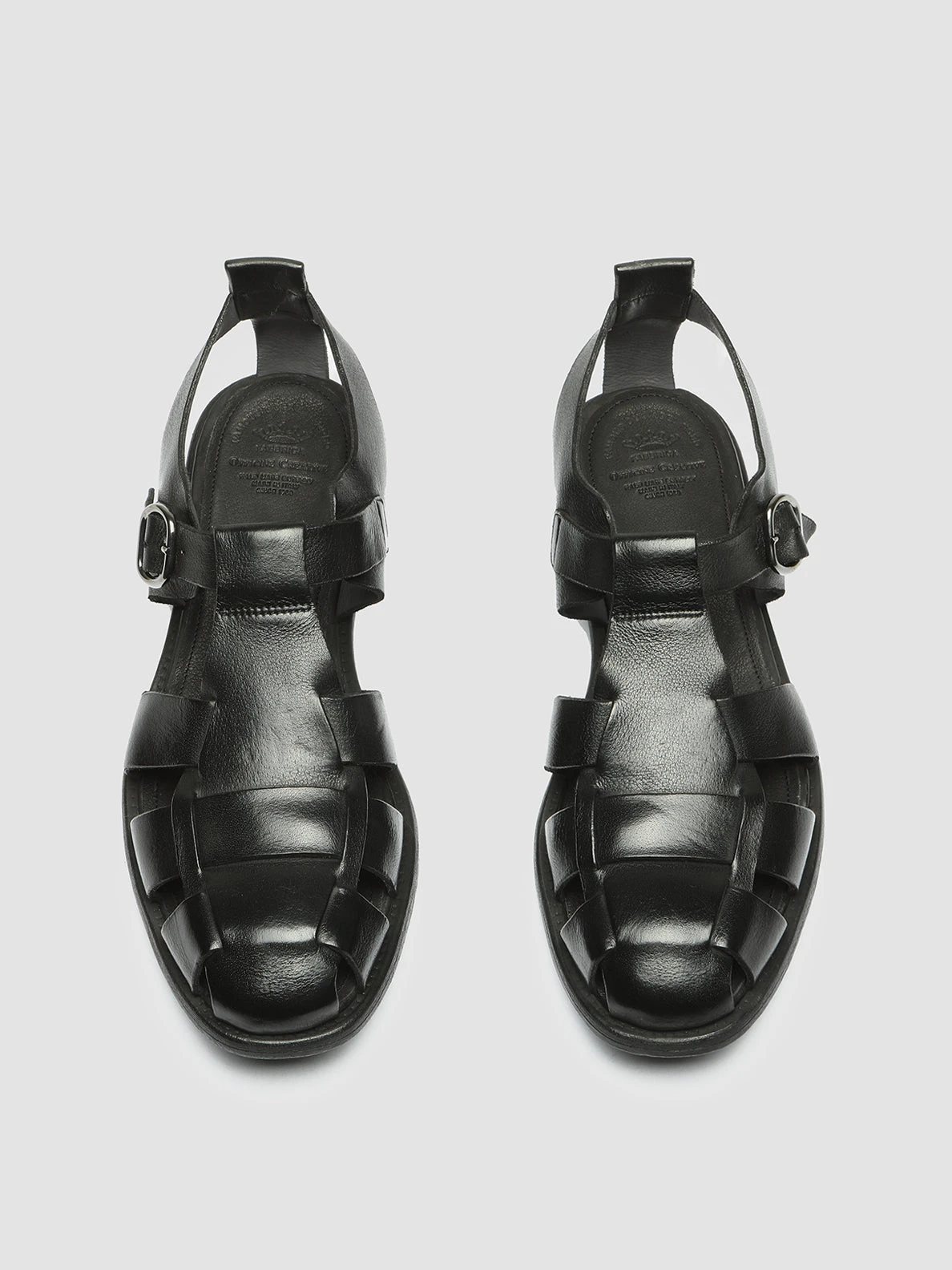 Elegance and comfort distinguish our Chronicle sandals in fine black leather. Made by our skilled craftsmen, they reveal a multiple woven strap design, almond toe, silver-tone metal buckle fastening and a natural rubber sole with a stacked heel.