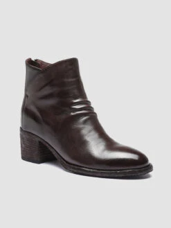 Handcrafted from supple dark burgundy leather our Denner ankle boots feature a comfortable and versatile silhouette with a stable midi block heel. They reveal an almond toe soft front pleats a comfortable silver-tone zip fastening at back and a leather sole with non-slip rubber pads.