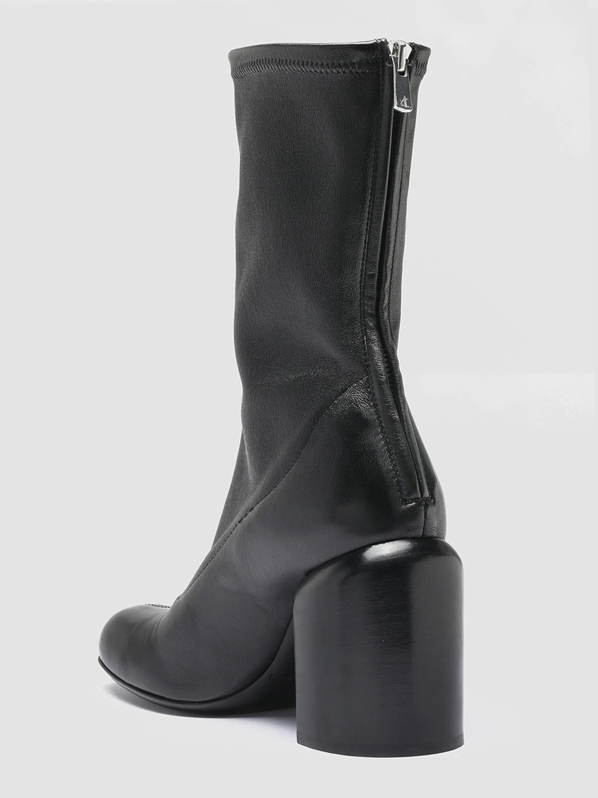 Our handcrafted Esther ankle boots reveal a comfortable and elegant silhouette in black supple stretch nappa leather. Perfect to wear from morning till night they set on a high rounded design block heel and feature a comfortable back silver-tone zip fastening round toe and a leather sole with rubber pads on the bottom.