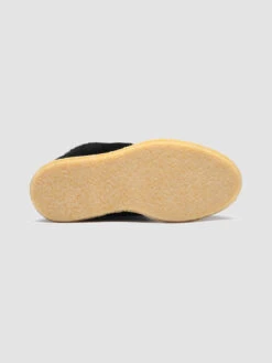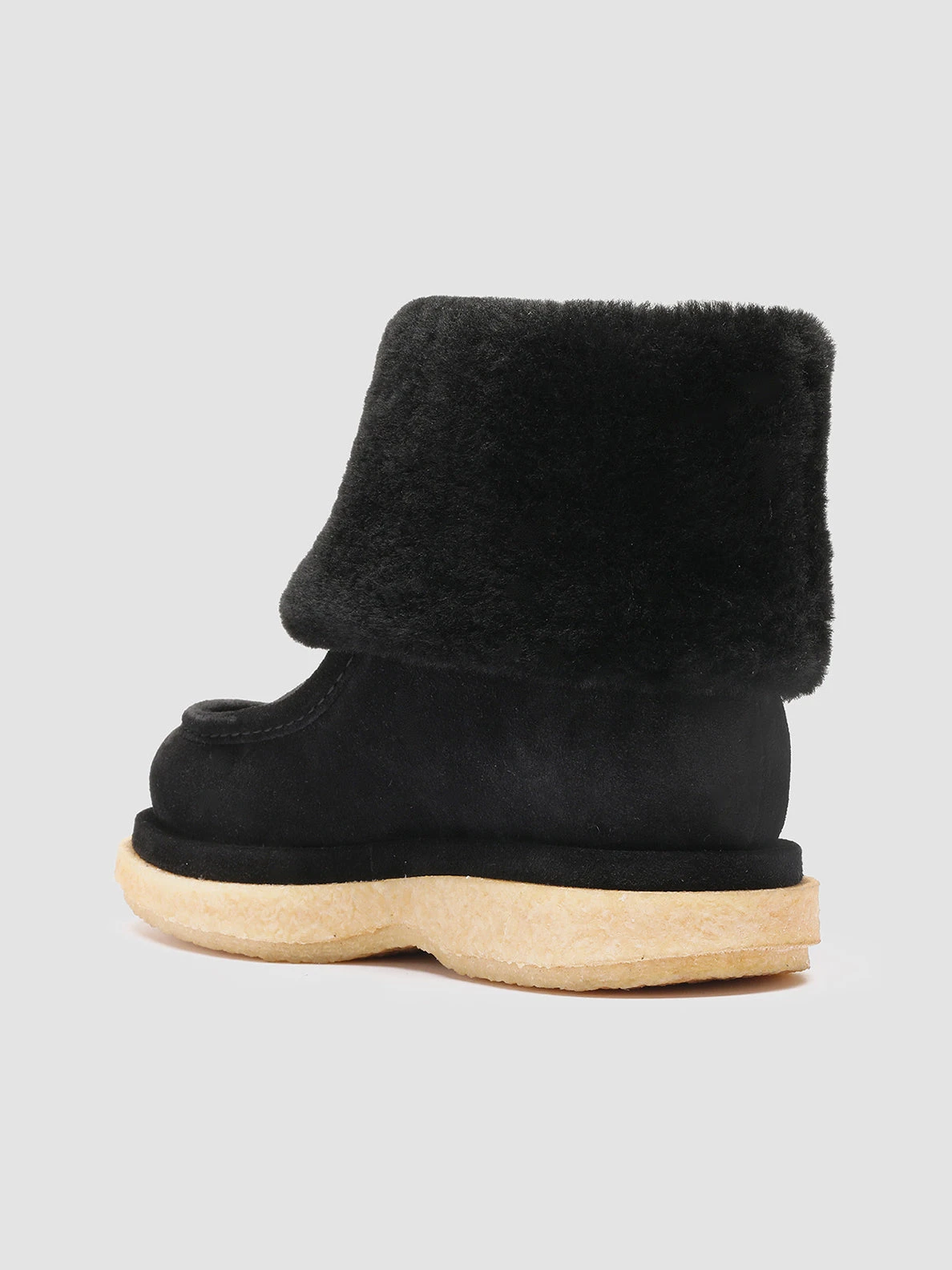 Our comfortable Holyfur ankle boots are ideal for wearing on the coldest days of the season. Expertly handcrafted from black suede they feature a soft tone-on-tone shearling lining and wide lapel a rounded toe highlighted by the embossed seam and a modern casual twist crepe sole.