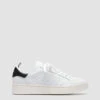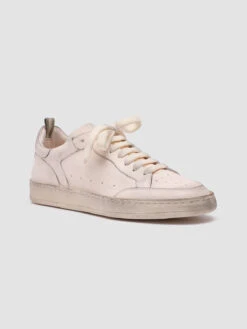 Our Kareem sneakers in fine white leather stand out thanks to the bold vintage and distressed all-over finish. Made entirely by hand by our skilled craftsmen they feature a rounded toe flat cotton laces signature grosgrain heel loop tab gold-tone logo embossed at the tongue and back and a flexible natural latex sole.