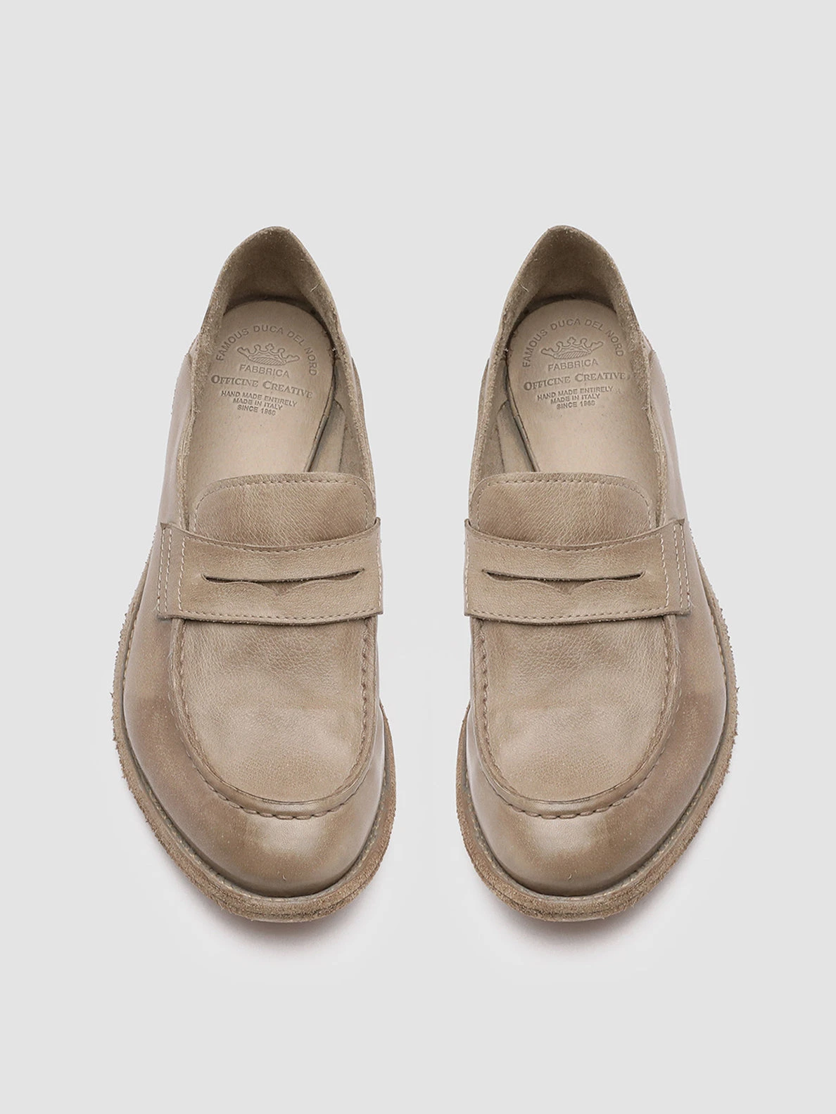 Our comfortable Lexikon penny loafers stand out thanks to their flawless handcrafted silhouette with vintage vibes in fine smooth dove-grey leather. Set on a leather sole with a stacked heel they feature a rounded toe highlighted by tone-on-tone stitching and a lightweight unlined design.