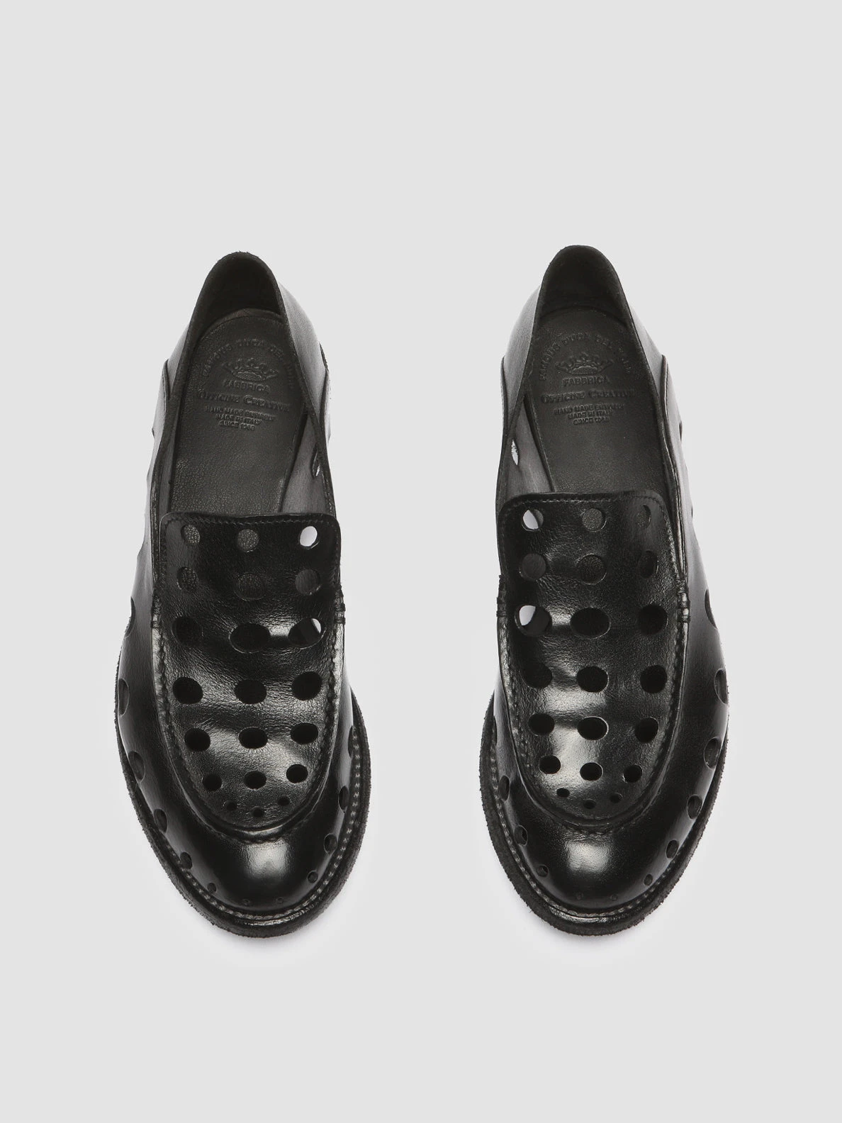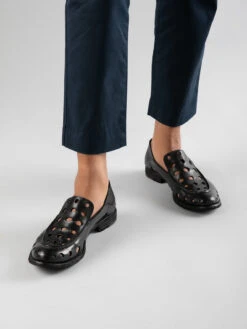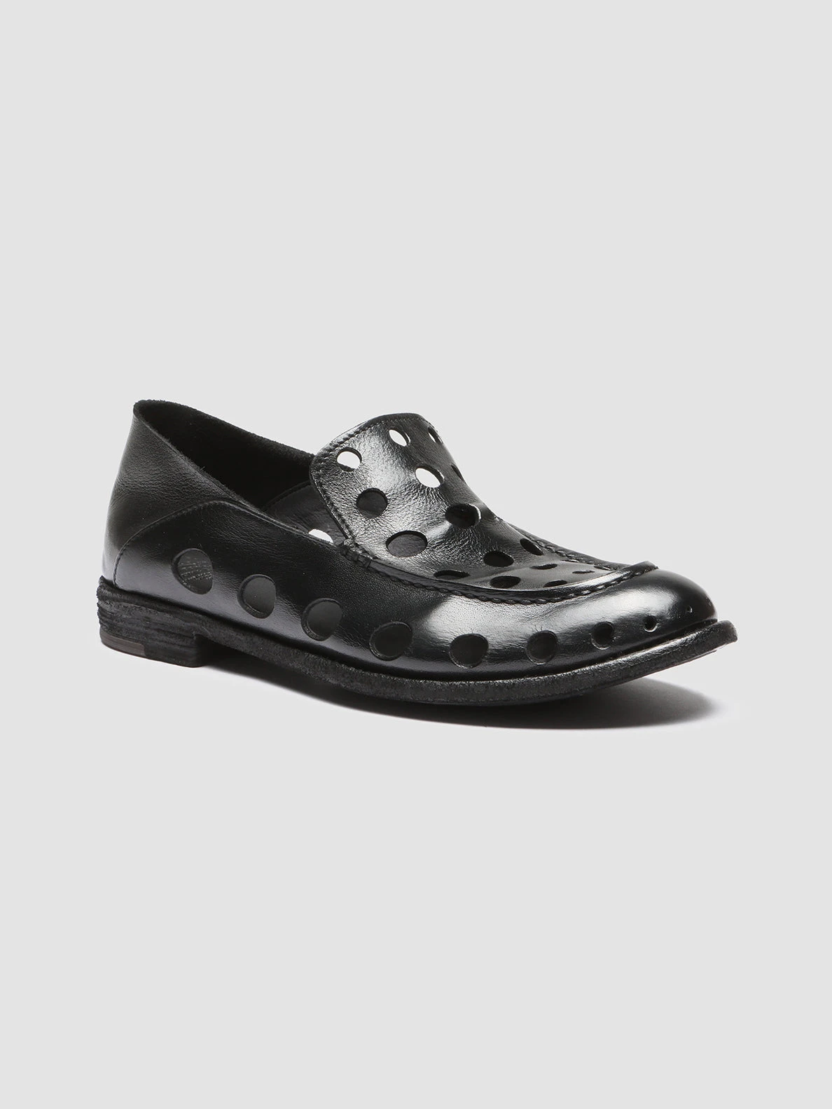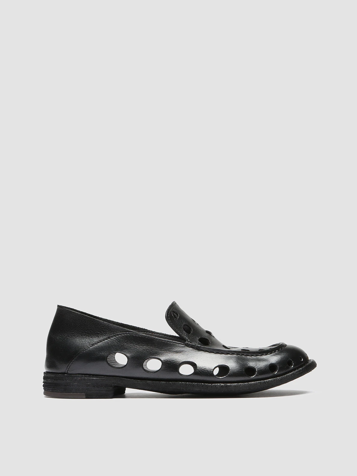 Style and uniqueness go hand in hand in our exclusive Lexikon handcrafted loafers. They are made from smooth black leather and feature cut-outs throughout the upper, a rounded almond toe, a leather sole with a stacked heel and a foldable back panel to wear as slides too.
