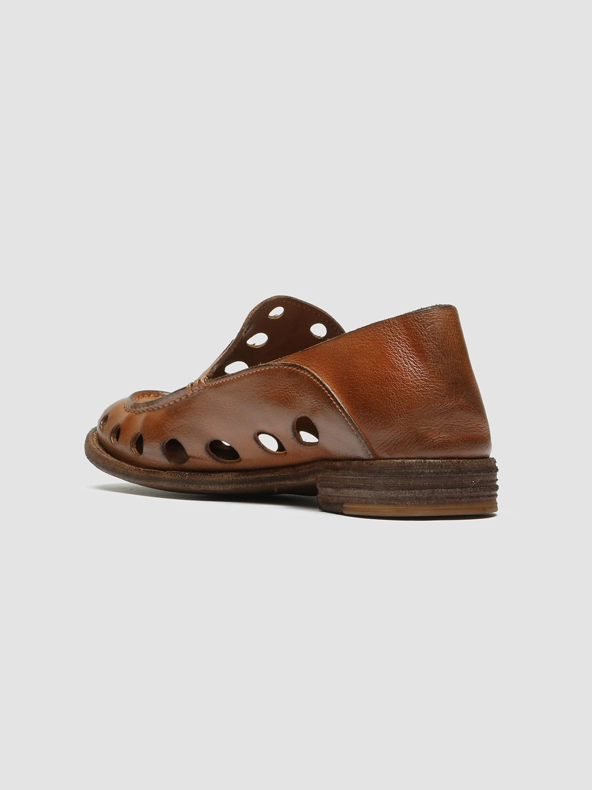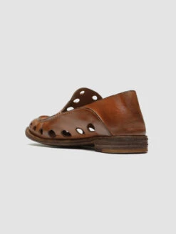 Style and uniqueness go hand in hand in our exclusive Lexikon handcrafted loafers. They are made from smooth ginger-tone leather and feature cut-outs throughout the upper, a rounded almond toe, a leather sole with a stacked heel and a foldable back panel to wear as slides too.