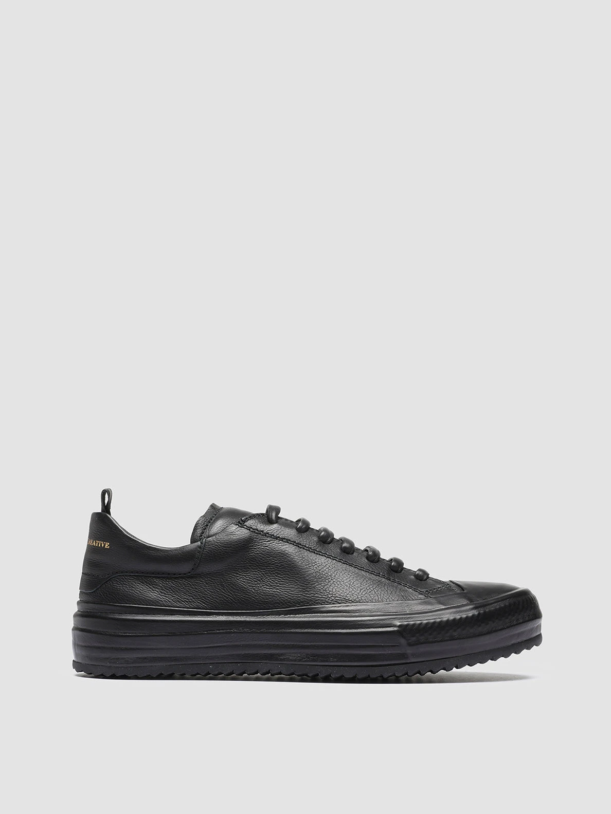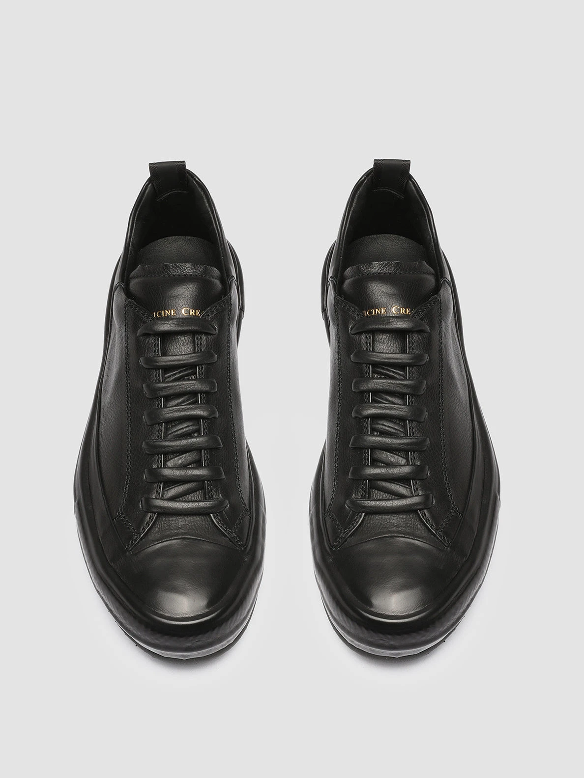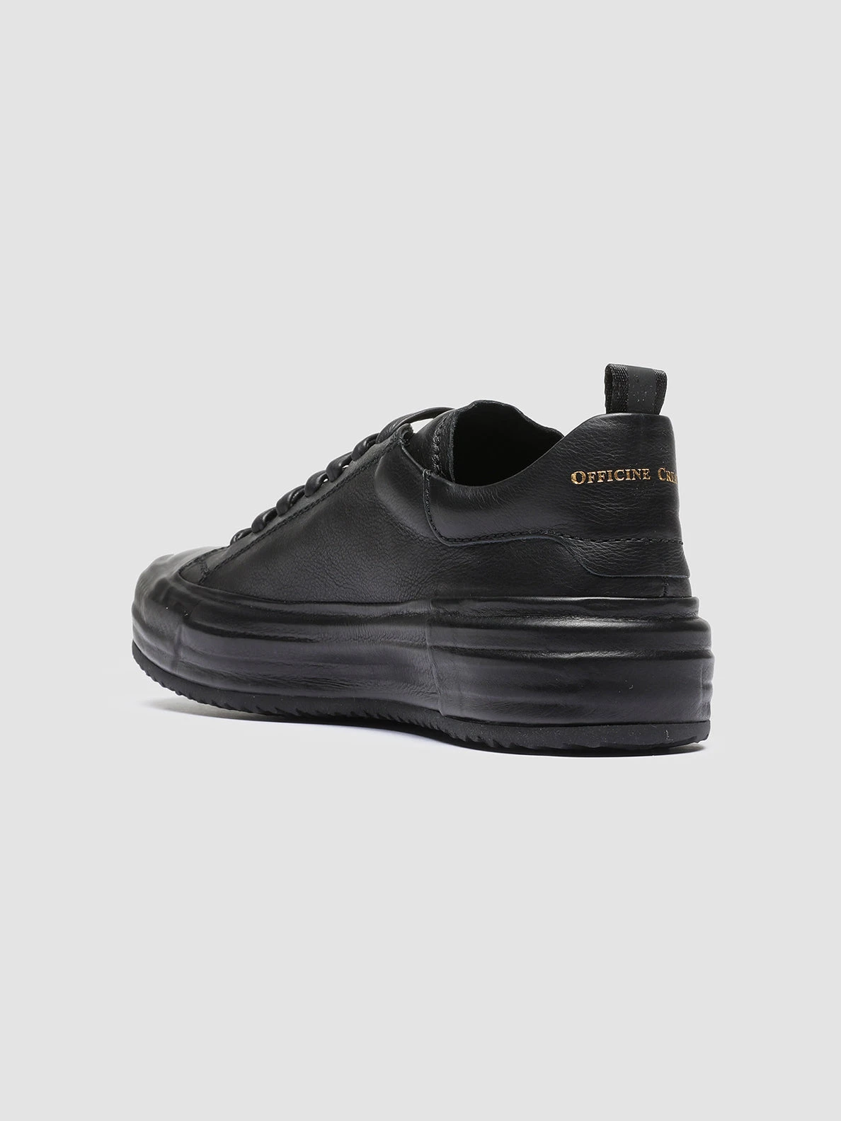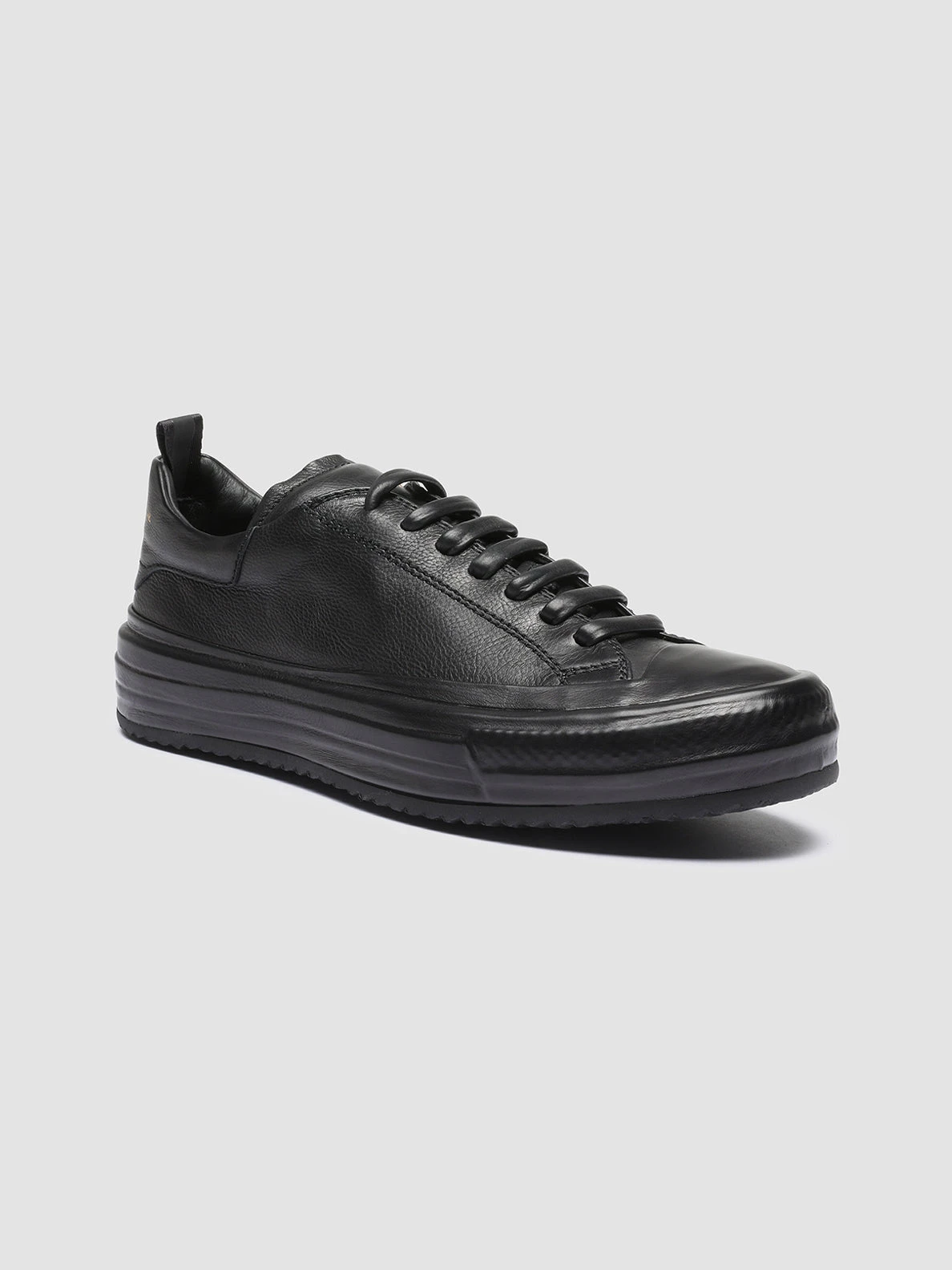 Our exclusive Mes sneakers reveal a versatile and gritty total black style marked by a covered rubber sole with a tread outsole. They are crafted from fine leather by our artisans and reveal tone on tone leather laces our logo lettering at the tongue and heel patch and signature grosgrain pull tab.