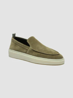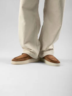 A nonchalant and versatile hybrid silhouette makes our Muskrat loafers in supple taupe suede truly special. Handcrafted, they feature a rounded toe highlighted by embossed stitching, signature grosgrain heel loop tab, leather lining and insole and a natural white rubber sole.