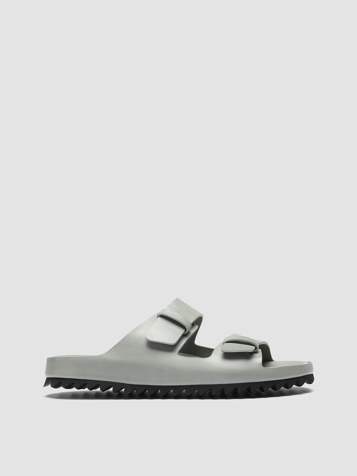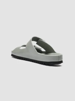 Our handcrafted Pelagie sandals are perfect for an effortless relaxed and contemporary style. They are handcrafted from mint green leather and reveal two straps with loops a minimal seamless design molded leather insole and blac EVA rubber tread sole.