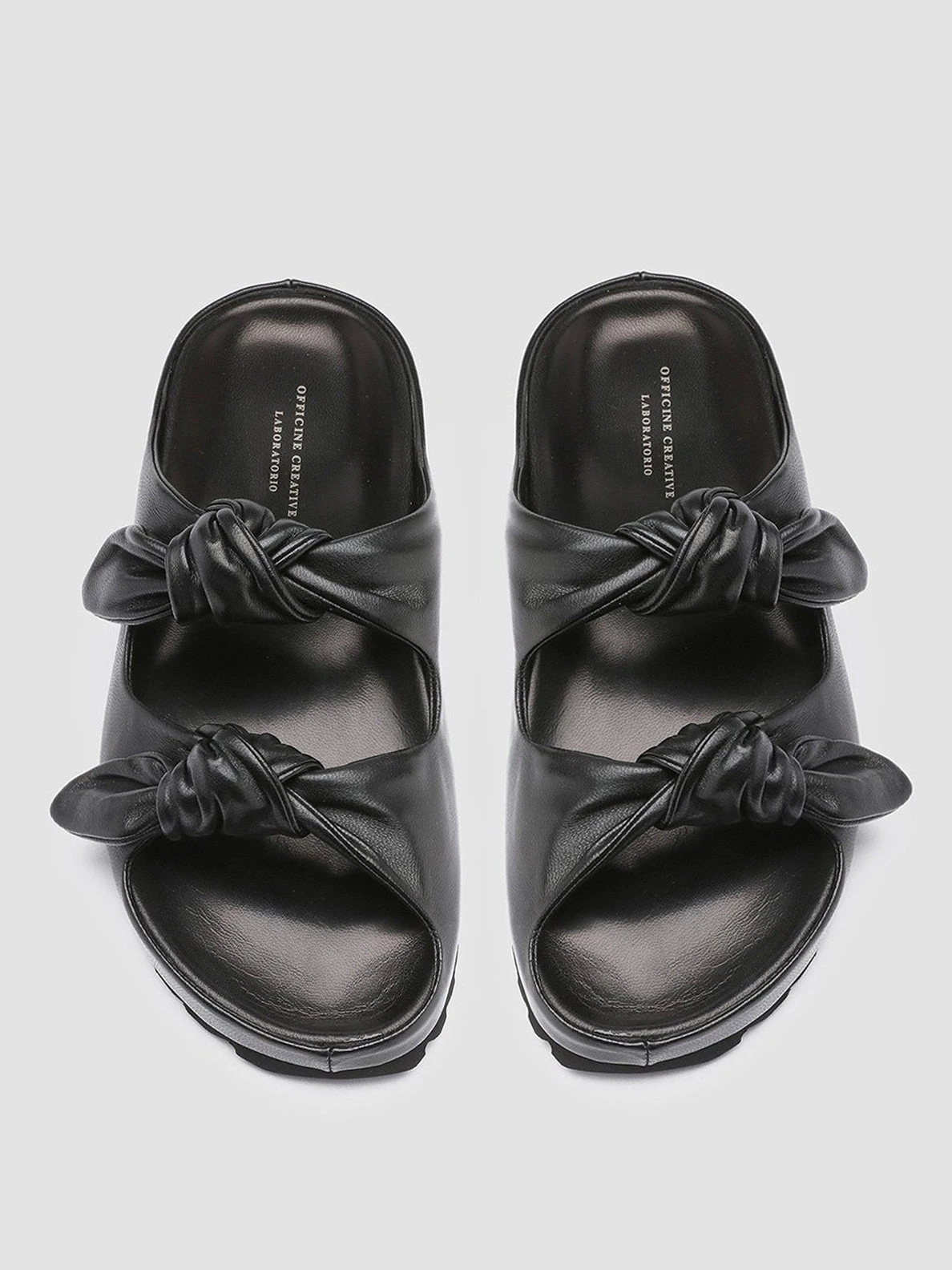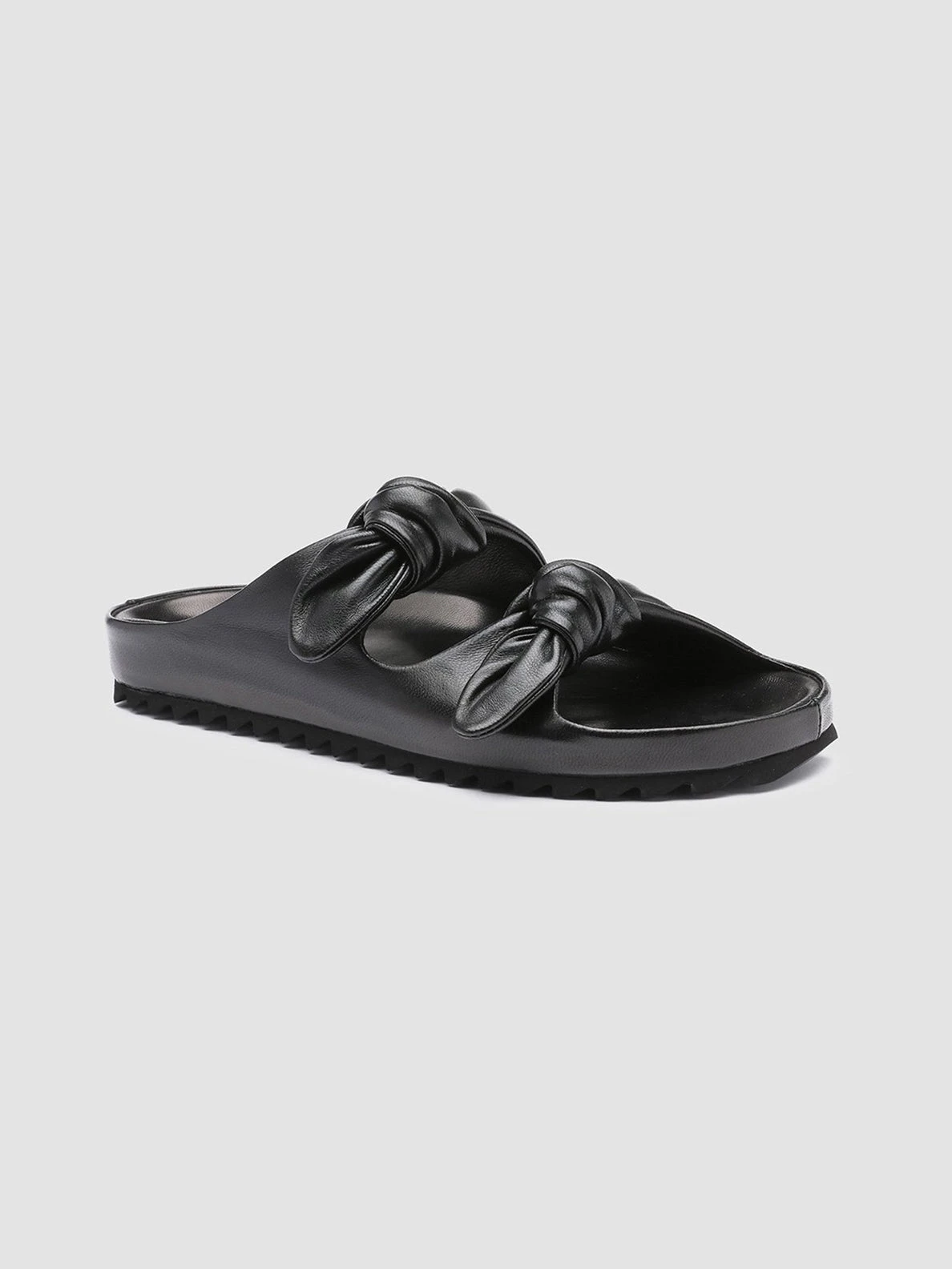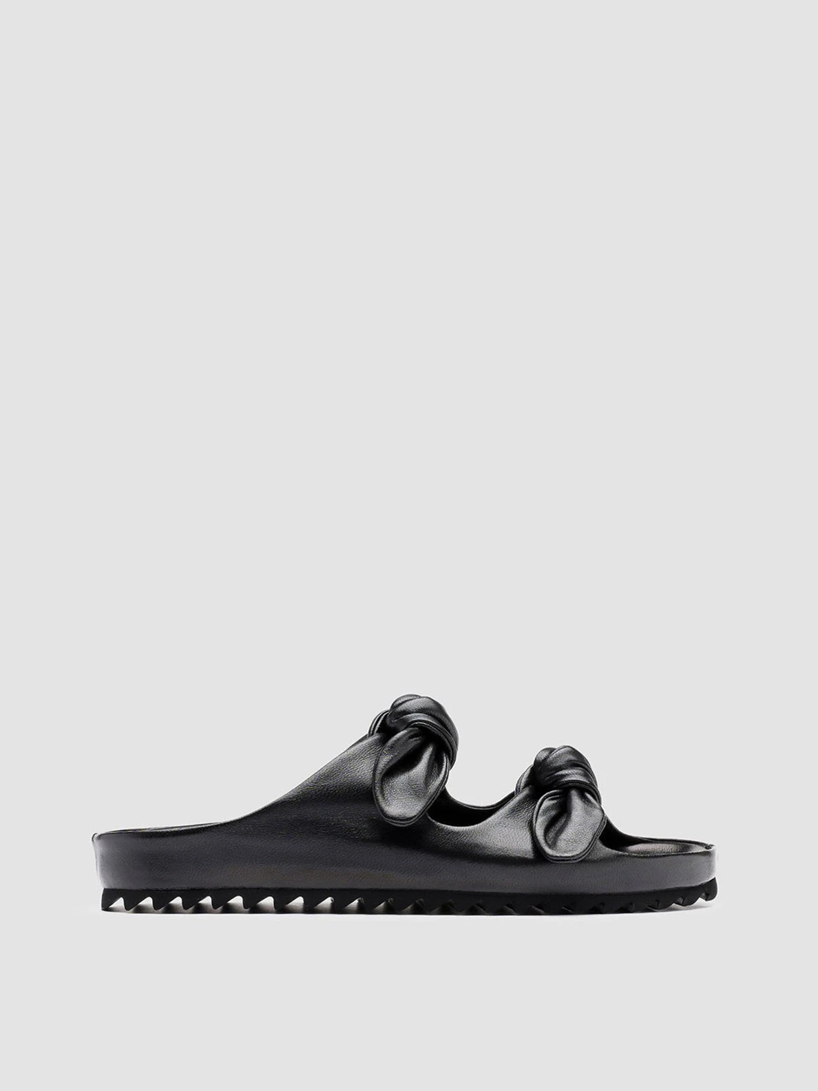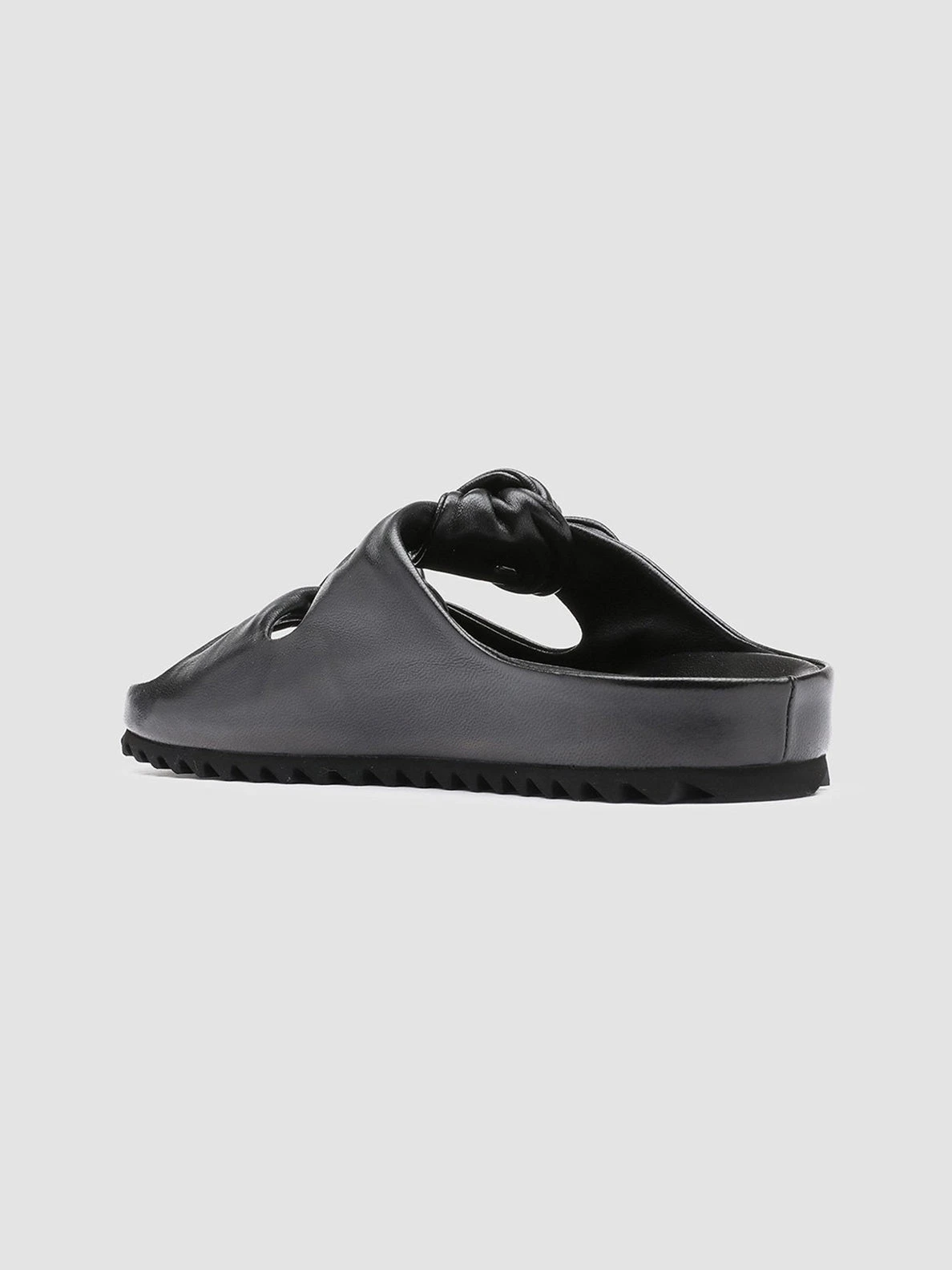 A clean, essential design and an incredible attention to detail characterize our Pelagie sandals. Handcrafted in Italy using the highest-quality vegetable tanned leather, these slides feature a rounded toe with two knot straps and a tread rubber sole, for a comfortable wear. CODE: PELAGIE/010 GUANTERIA NERO