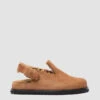 Warm and comfortable our Pelagie mules will successfully accompany your leisure outfits along the winter season. They are handcrafted from premium black suede and feature a loafer-style design highlighted by flawless stitching plush tone-on-tone shearling lining and a flat non-slip EVA rubber sole.