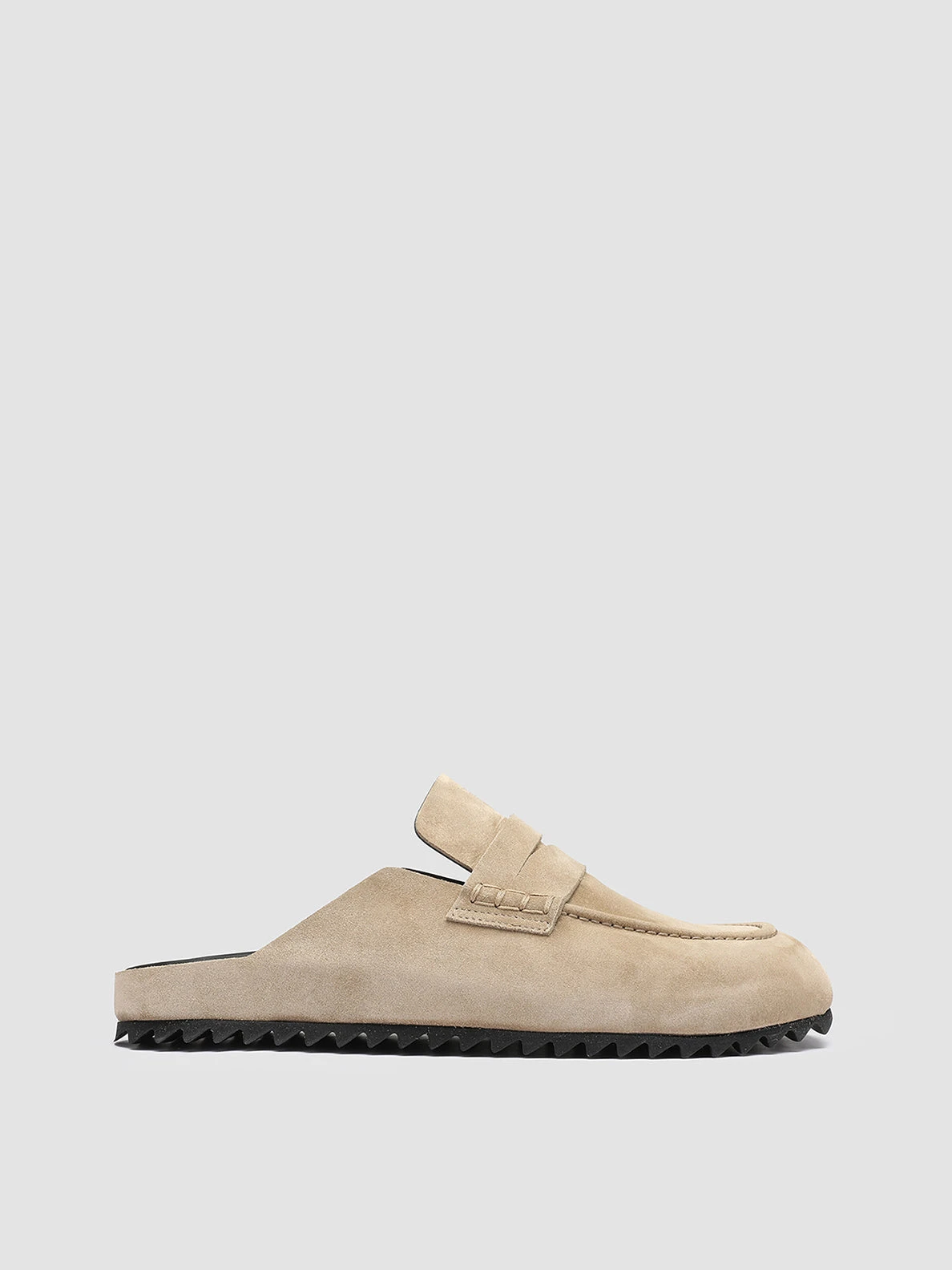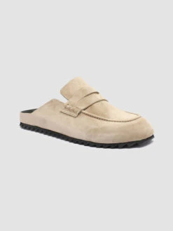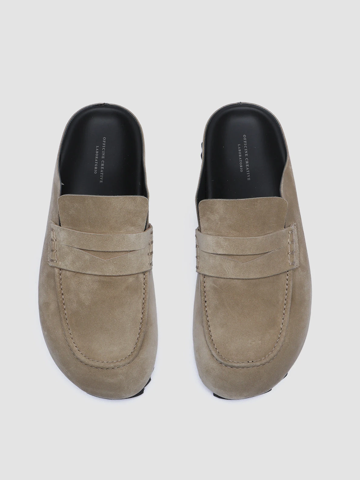 Contemporary and classic styles blend perfectly in our Phobia blrown-tone fine suede mules. They have a penny loafer style with a round toe highlighted by the reinforcement stitching a comfortable black leather molded insole and a non-slip rubber sole that adds a gritty edge.