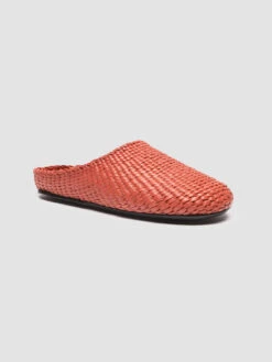 Our Polly flat mules stand out with their finely woven off-white leather upper. Made entirely by hand by our skilled craftsmen, they feature a rounded toe, woven insole with logo-label and a thin black rubber sole.