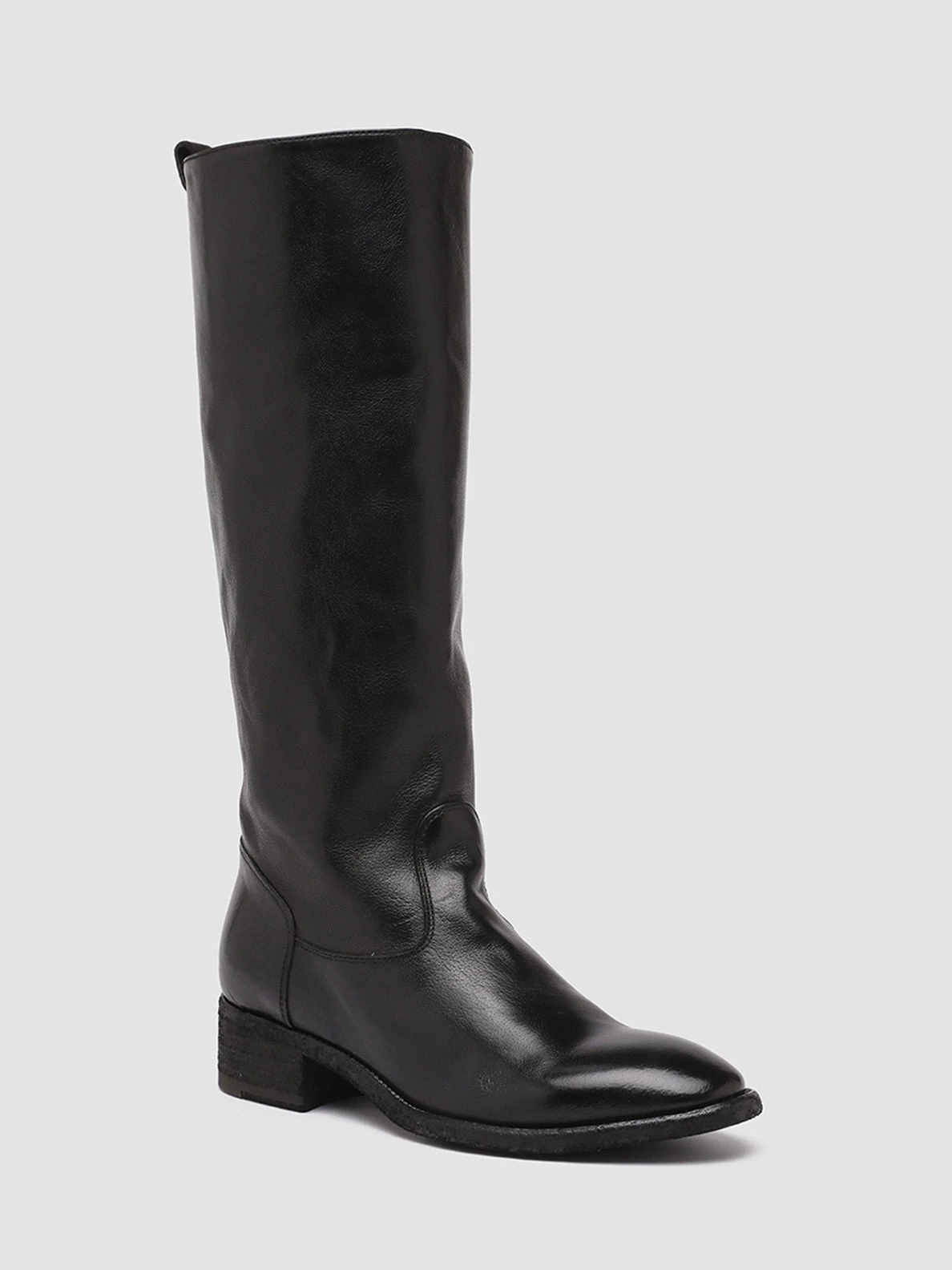 Handmade from fine black smooth leather Seline boots fully highlight the quality of our leathers and our exclusive craftsmanship. They reveal a comfortable style with a soft leg rounded almond toe side zip fastening leather back pull tab and a sturdy leather sole with a stacked heel.