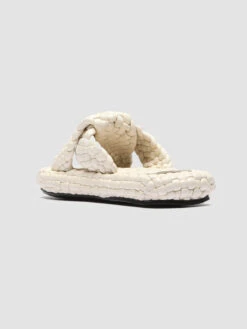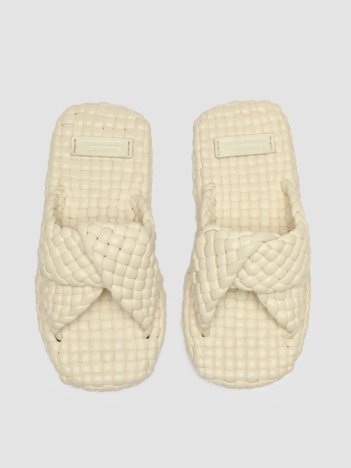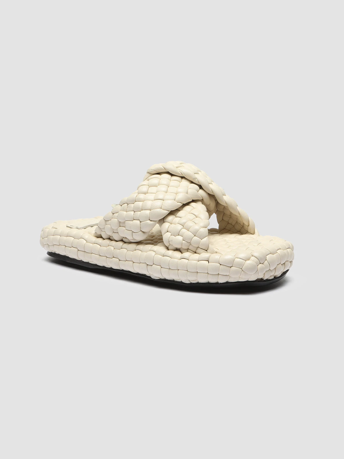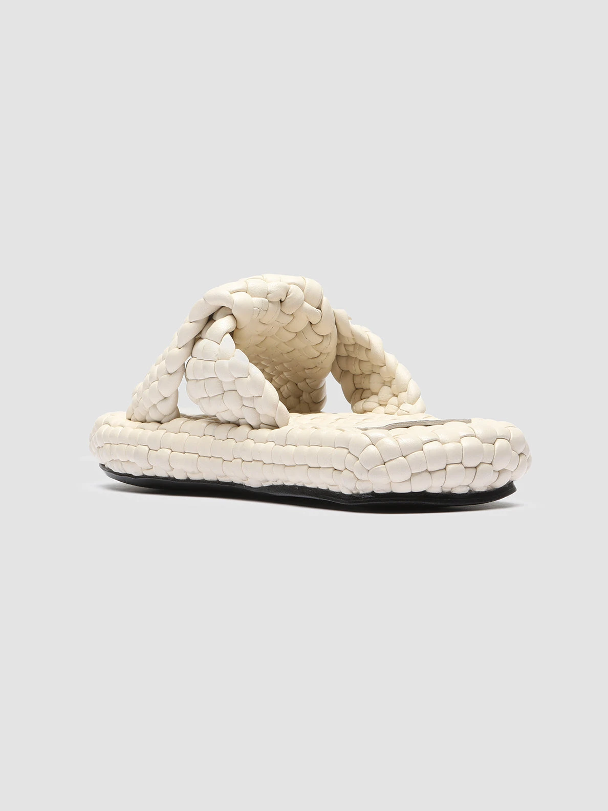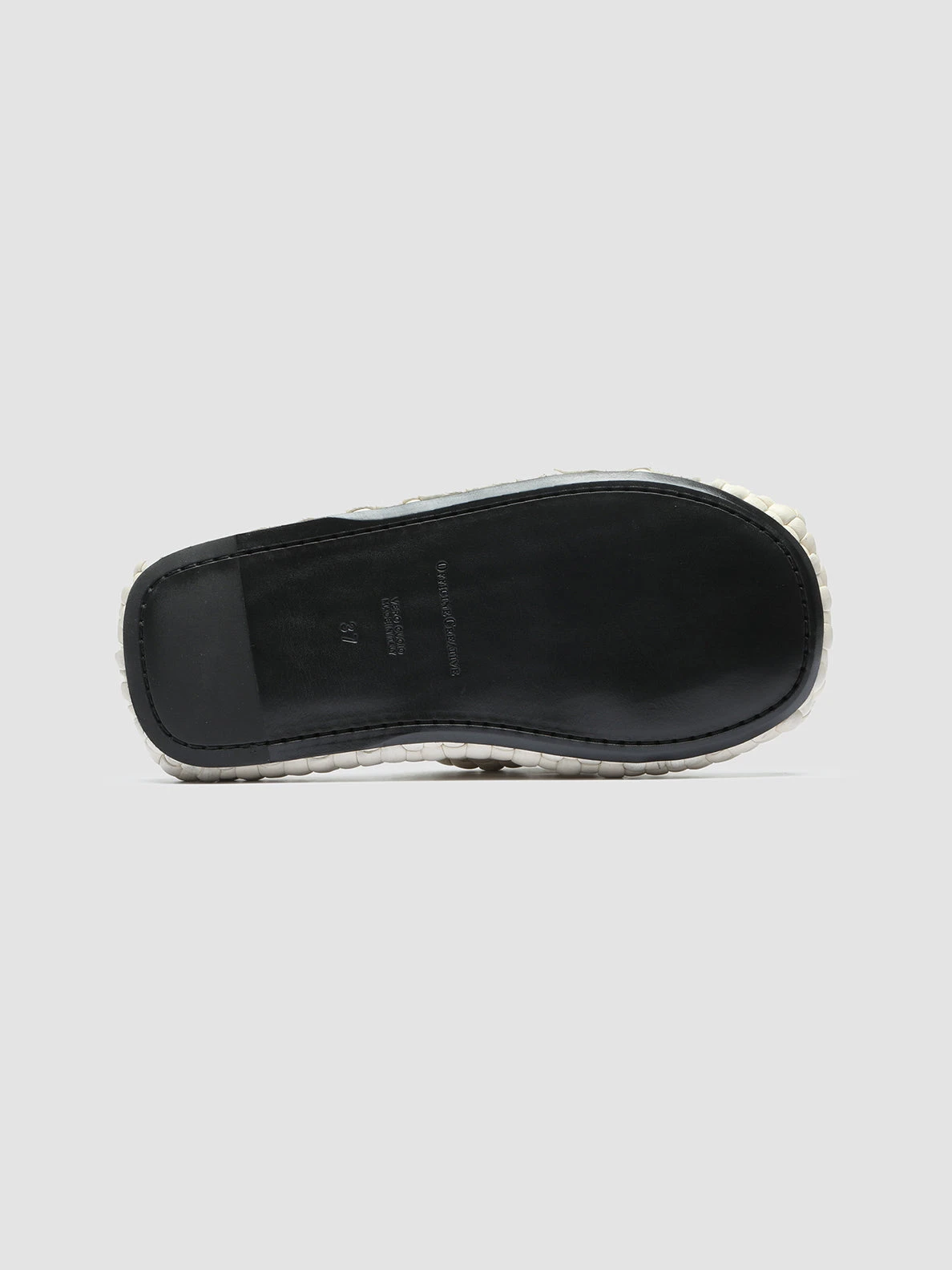 Our unique Willow slides stand out with their finely woven white leather straps and insole. Handcrafted by our peerless artisans, they reveal a square toe and a flat leather outsole.
