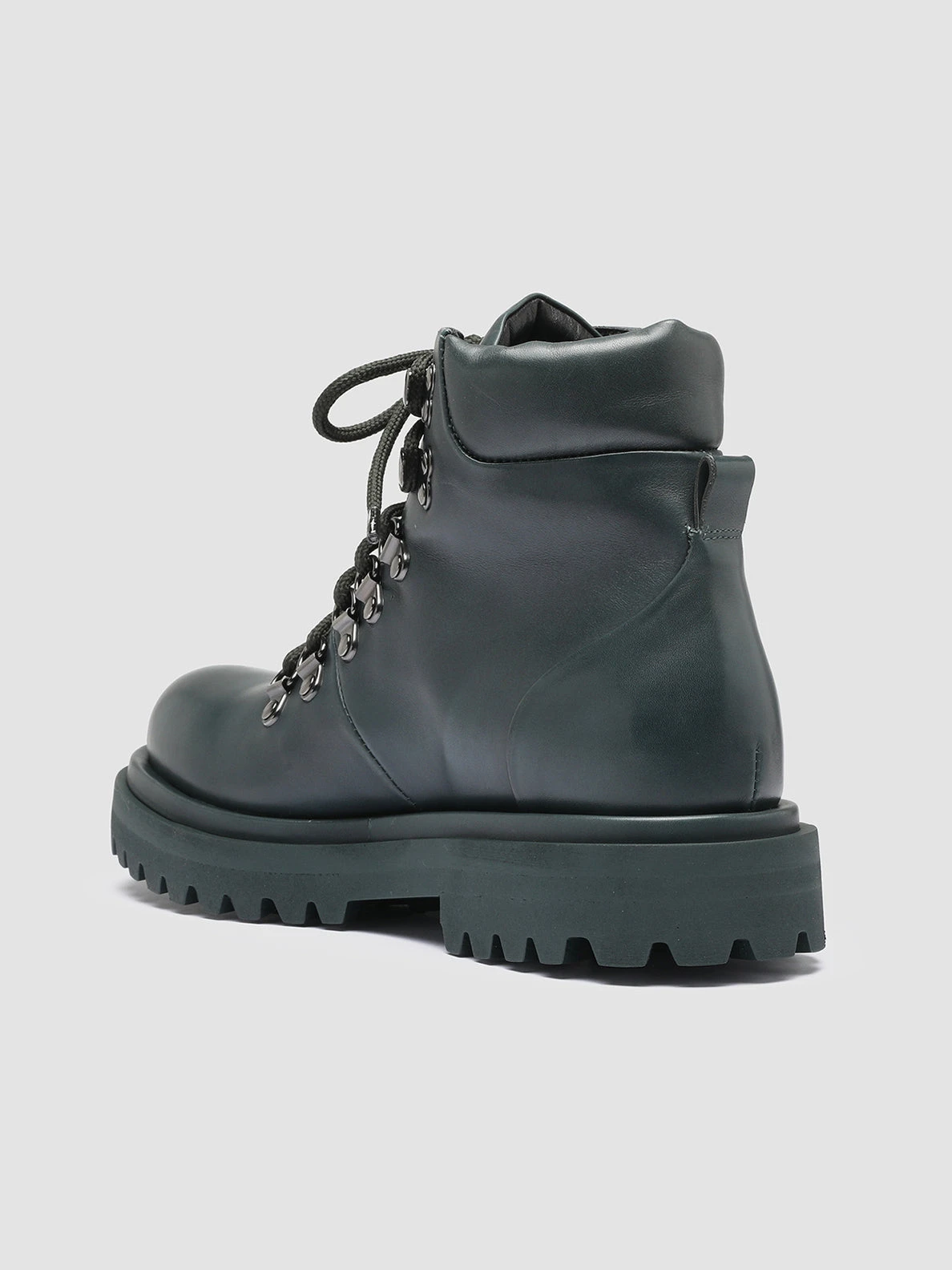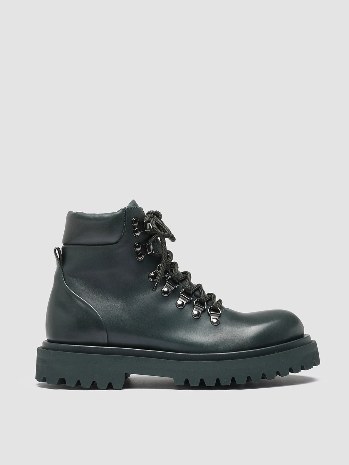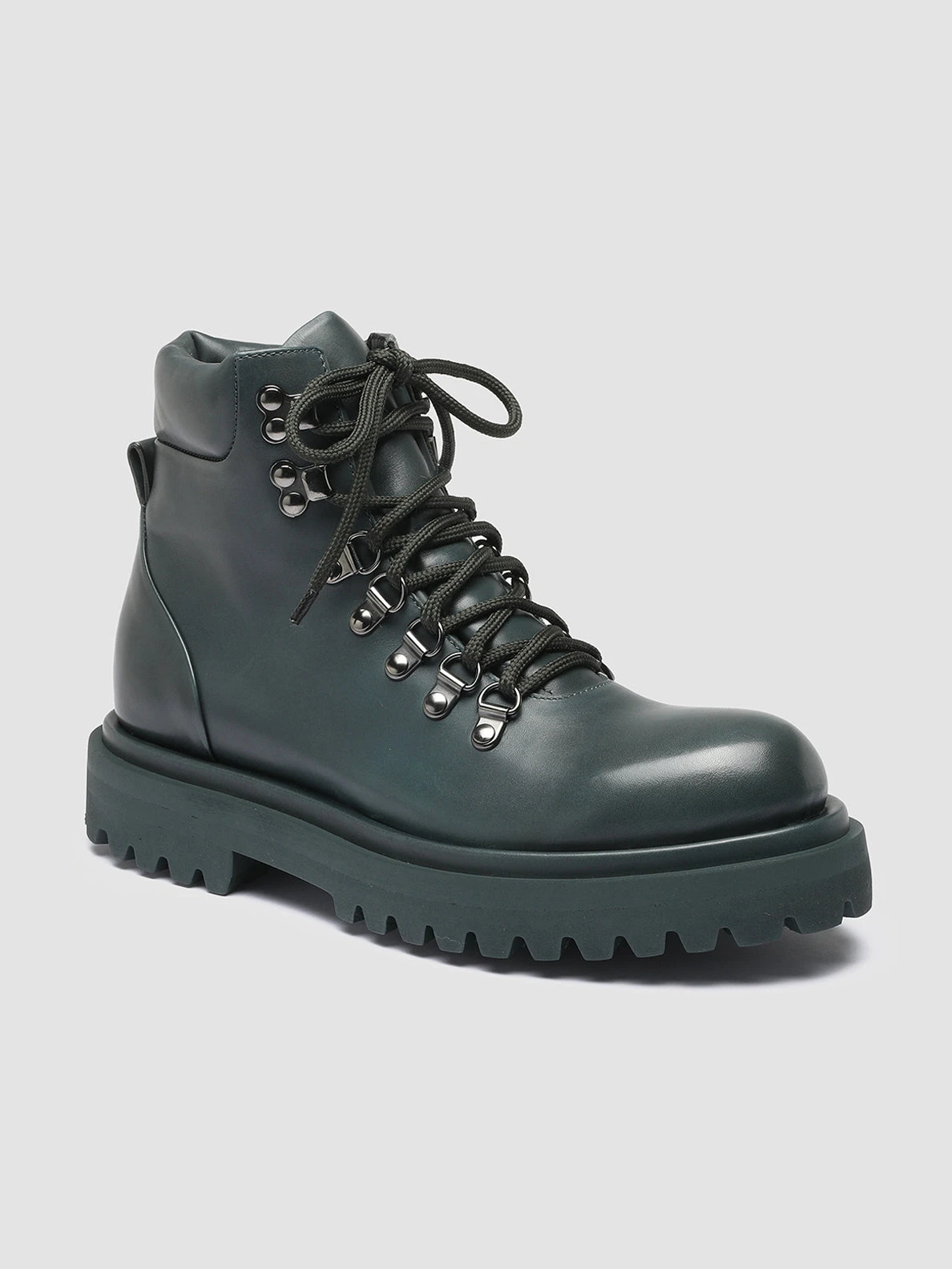 Our Wisal ankle boots feature a comfortable and decidedly cool hiking-inspired design. Handcrafted by our artisans from premium smooth teal green leather they reveal front fabric laces with silver-tone metal eyelets round toe leather back loop tab and a gritty rubber tread sole.